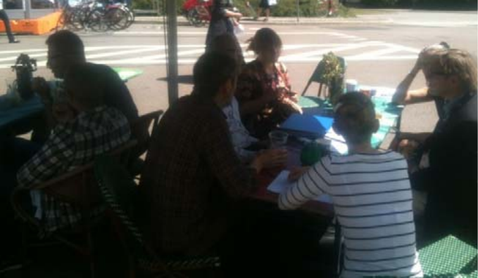 Abbiamo usato il metodo café scientifique combinato con un world café multi-esperto, pubblicizzato come "Conversazione Café". Dodici membri del pubblico di Norwich si sono registrati e hanno partecipato un venerdì sera nel centro della città. Dopo una breve introduzione, i partecipanti hanno formato tre gruppi e i partner di EuTRACE si sono mossi attorno a ciascun gruppo trascorrendo 20 minuti discutendo tre aspetti dell'ingegneria del clima: la scienza fisica, la politica e le percezioni pubbliche. Queste discussioni sono state quindi riassunte e una discussione di un intero gruppo si è conclusa la sera.